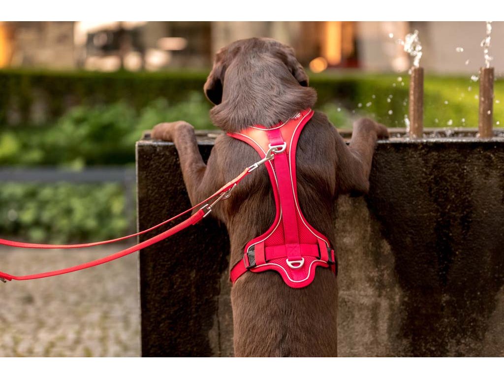 - chladící účinek při ponoření do vody – vzdušný materiál postroje se vyznačuje mimořádně vysokou propustností vzduchu, a tak umožňuje poskytovat účinnou chladící funkci během horkých letních dnů. Postroj jednoduše ponořte do studené vody. Pokud ho následně nasadíte svému pejskovi, vytvoří se tak příjemný a dlouhotrvající chladivý efekt.
