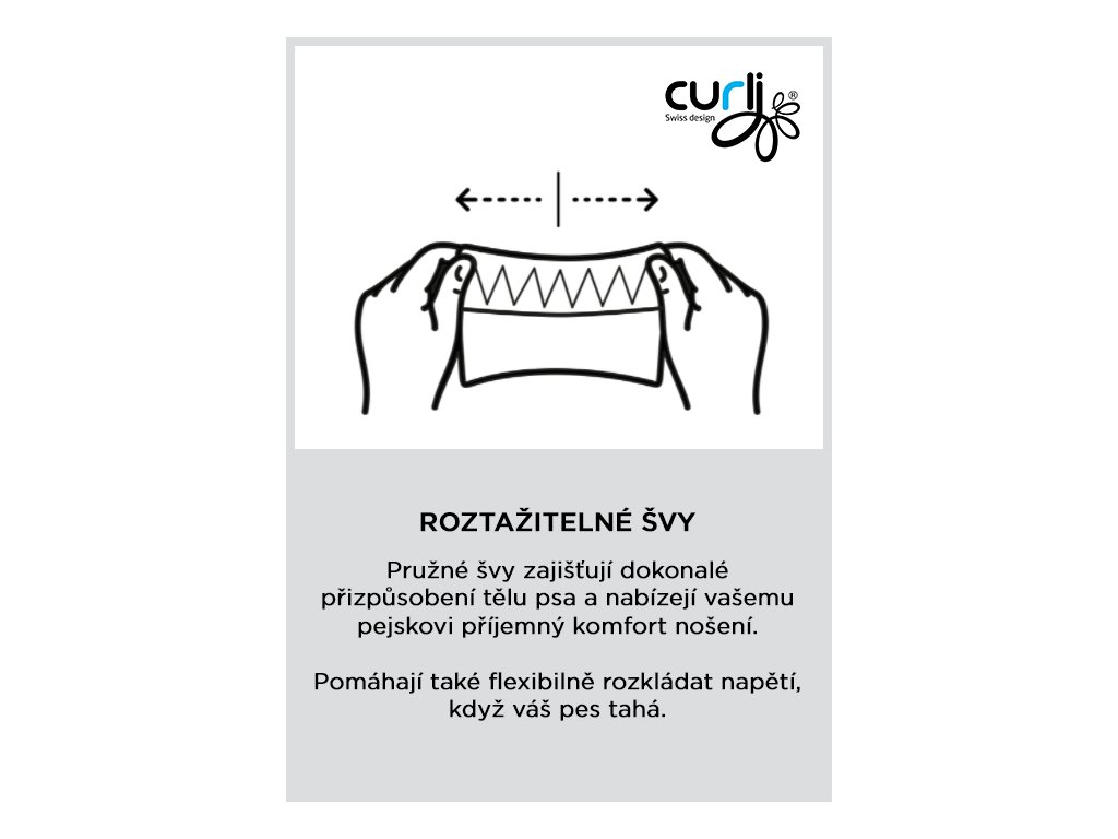 - Optimální rozložení tahu a odlehčení tlaku díky elastickým švům, které se dokonalé přizpůsobují tělu vašeho psa a poskytují mu tak příjemný pocit při nošení